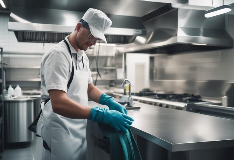 Un professionnel du nettoyage CHR garantit la conformité aux normes sanitaires